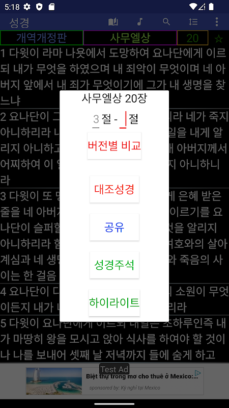12. Wenn Sie den gewünschten Vers gedrückt halten, können Sie Versionen vergleichen, Kommentare hinzufügen und den Vers teilen.