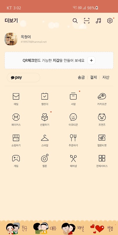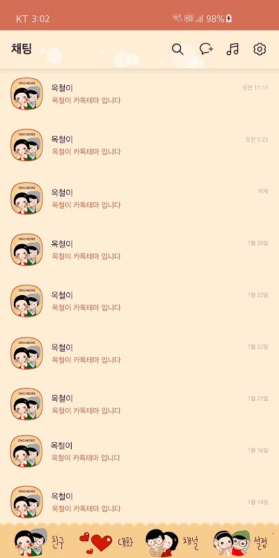테마 적용하기 버튼을 누르시면 카카오톡 테마가 적용됩니다
