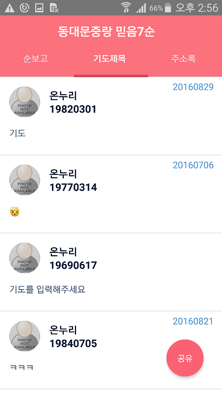 - 순원들의 기도제목을 개인별로 입력하는 방식