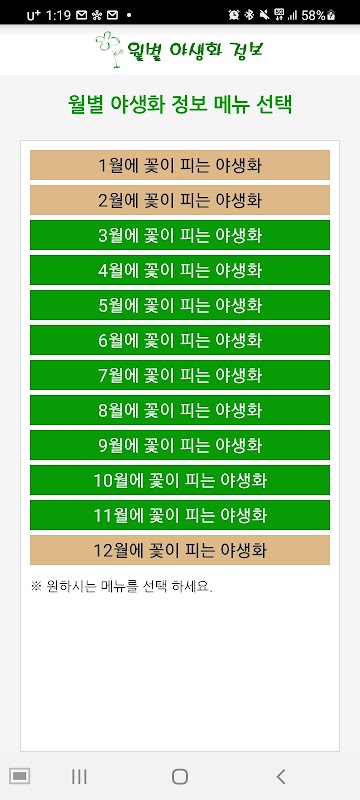 월별 야생화 정보 V2.0은 우리나라 산과 들 또는 공원에서 자라는 식물 정보들을 제공하는 앱으로, 가족들과 함께 등산 또는 야외 나들이 활동시 식물을 만났을 때 유용 합니다.