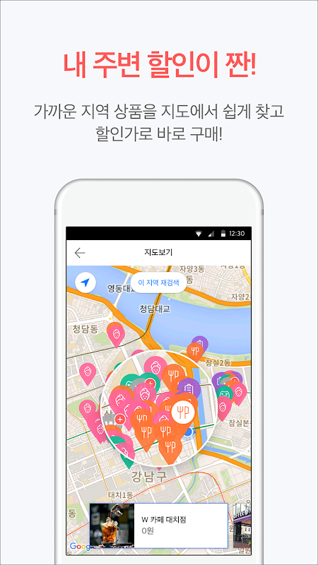 - 위치정보 : 현재 위치를 기준으로 주변 할인업체 노출