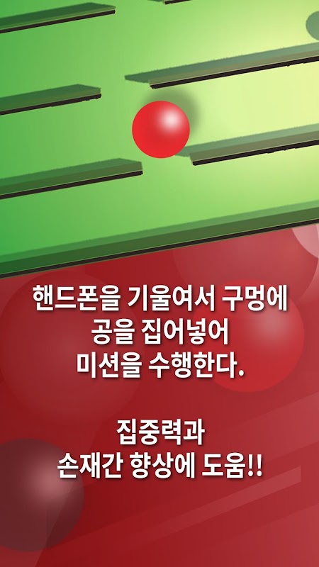 핸드폰을 기울여 가며 각 구멍에 공을 집어 넣어 미션을 수행한다.