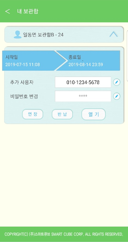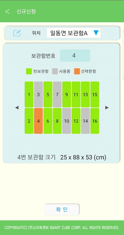 (주)스마트큐브의 의류/물품 보관함을 제어할 수 있는 애플리케이션입니다.