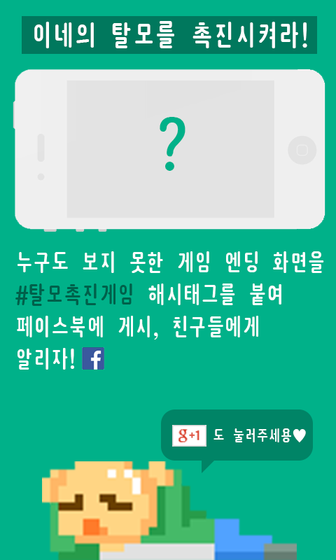 깨신 분이 있다면 페이스북에 엔딩 화면을 찍어 올려주세요! 해시태그 : #탈모촉진게임