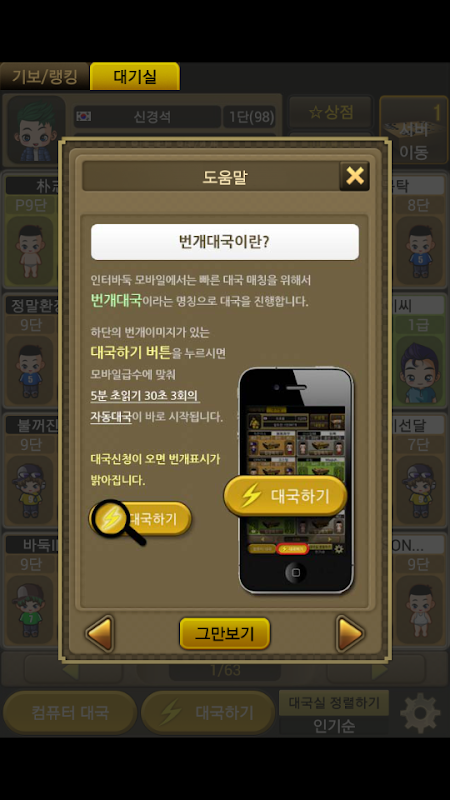 1. 대국 - 모바일, PC 제한없이 누구와도 함께 둘 수 있습니다.