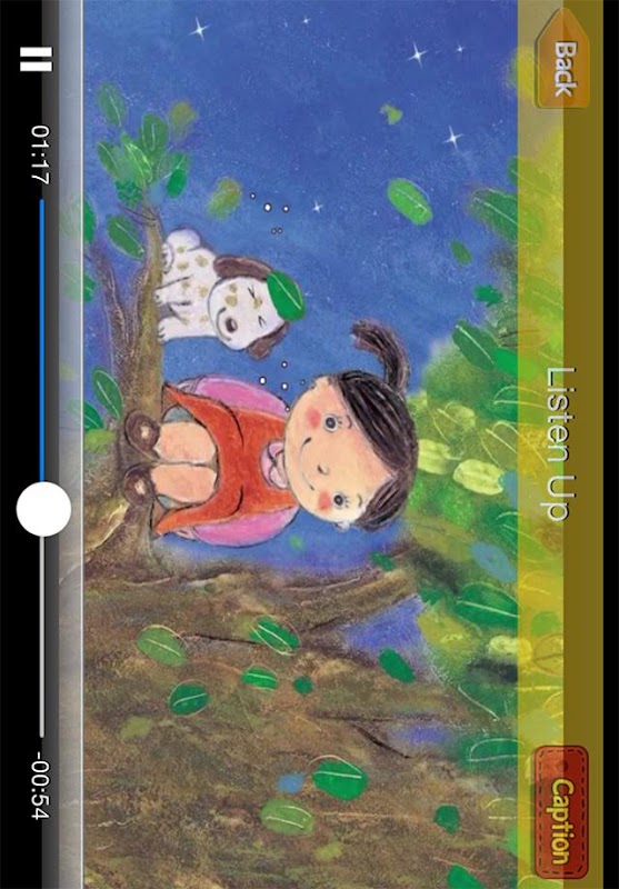 이야기를 듣거나 따라 말할 때 자막이 필요한 경우에는 자막(Caption) 버튼을 누르면 영어 자막이 표시됩니다.