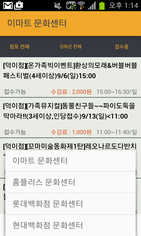 E-Mart Kulturzentrum, Homeplus Kulturzentrum, Lotte Kaufhaus Kulturzentrum, Hyundai Kaufhaus Kulturzentrum, NC Kaufhaus Kulturzentrum Informationen können auf einen Blick eingesehen werden.
