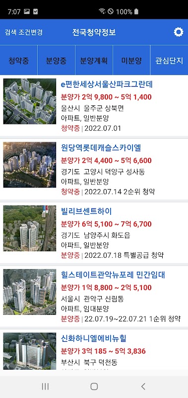 전국 청약 정보 - 관심 단지 분양 일정 알리미 1.0