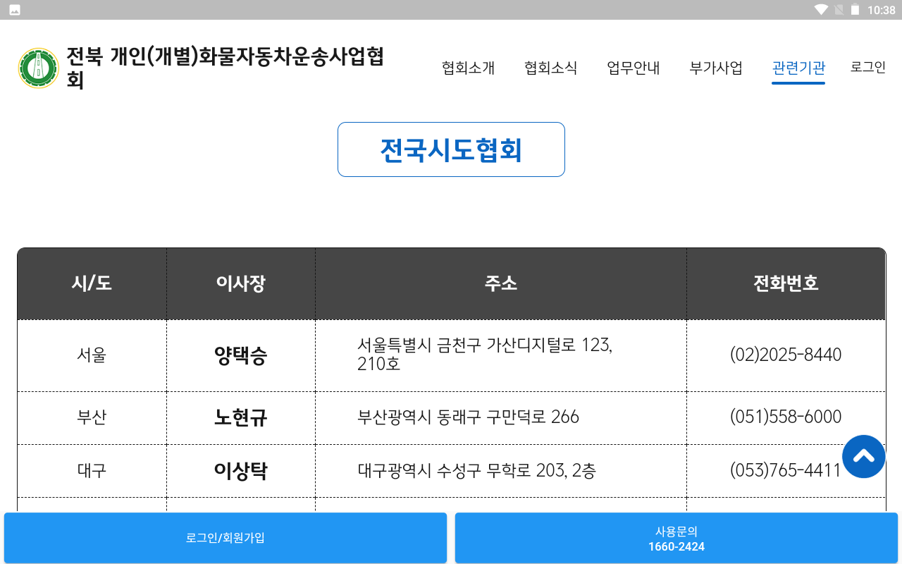 Jeonbuk individuelle (individuelle) Güterwagentransport Business Association Anwendungen.