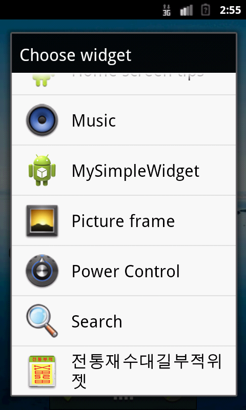 폰에서 앱 실행없이 폰 바탕화면에서 바로 볼 수 있는 위젯은 폰의 화면을 계속 누르고 있으면 뜨는 메뉴에서 위젯 선택한 후 전통 부적 선택하시면 됩니다. 바탕화면에 다른 아이콘들이 없이 충분한 공간이 있어야 나타납니다.