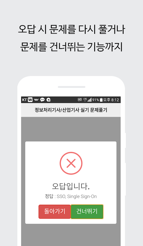 오답 시 문제를 다시 풀거나 문제를 건너뛸 수 있습니다.