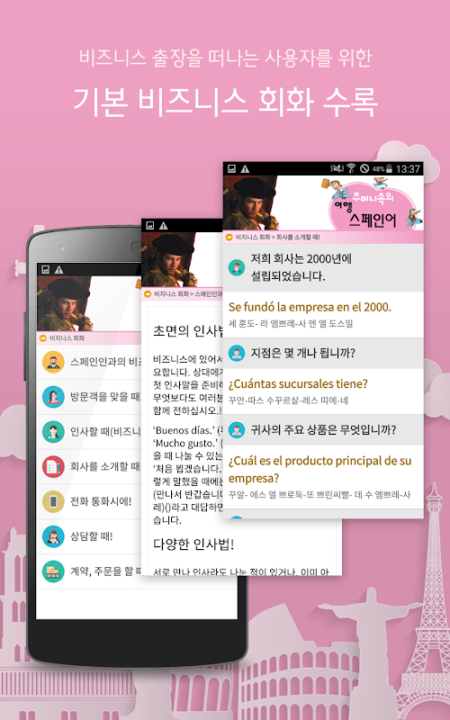 ▶해외 여행자를 위한! 도서 출판 신나라의 여행용 회화책을 어플로 탄생 ▶초간편 기본회화 6가지,각 상황에 따른 챕터내용수록 ▶스페인어음원지원