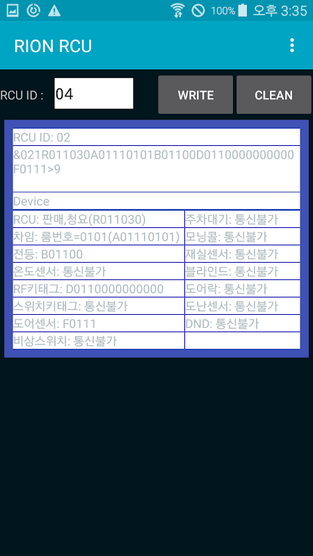 리온전자 RCU 상태 조회 어플입니다