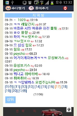 각 지역을 선택하여 해당 지역내 사람들과 대화를 나눌 수 있습니다.