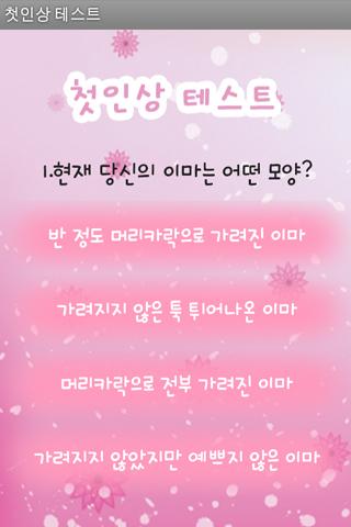 어플을 실행 한 후 나오는 질문에 대한 답을 클릭한다. 그리고 나의 첫인상 결과를 확인한다.