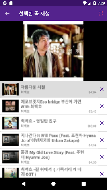 - 십팔번곡을 반복재생 할 수 있습니다.
