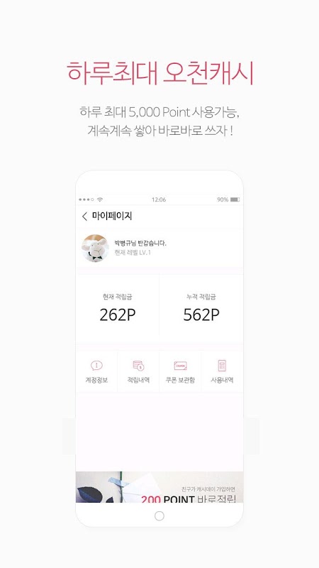 각종 퀴즈와 미션을 완료 후 포인트 획득!