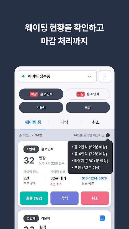 „Catch Table Waiting“, das ein effizientes Wartemanagement mit maßgeschneidertem Management ermöglicht, das perfekt für unser Geschäft ist