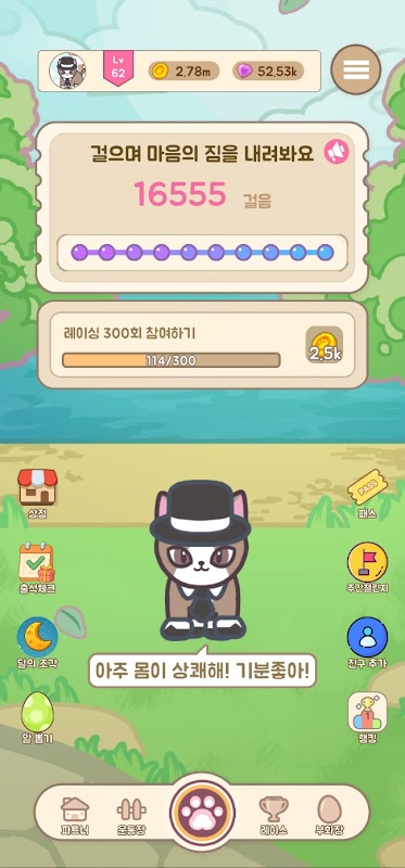 Cat Dog Run ist ein Laufspiel, in dem du durch die Anzahl der Schritte, die du in der realen Welt machst, niedliche Hunde und Katzen großziehen kannst.