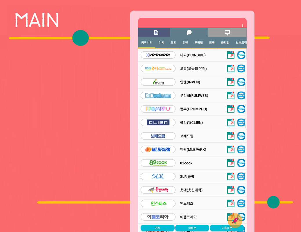 커뮤니티 찾아 여기저기 삼만리 하지 마세요. 국내 모든 커뮤니티의 게시판과 게시물을 한 곳에서 볼 수 있어요. 세상 만사 모든 이야기를 들을 수