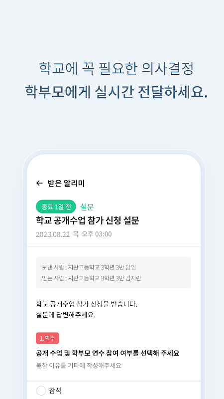 Cool Reminder ist eine Benachrichtigungs-App, mit der Sie Mitteilungen/Leitfäden, Umfragen/Abstimmungen usw., die von der Schule nach Hause gesendet werden, in Echtzeit überprüfen und beantworten können.