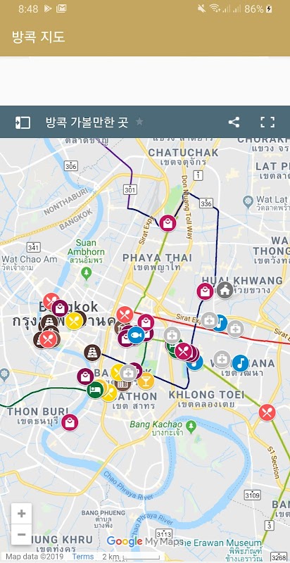 Ich habe eine Karte mit Sehenswürdigkeiten in Bangkok erstellt.