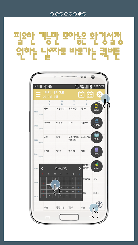 시간표와 날짜가 결합된 다이어리 기능의 시간표로 수행평가 및 과제등을 편리하게 관리할 수 있습니다.