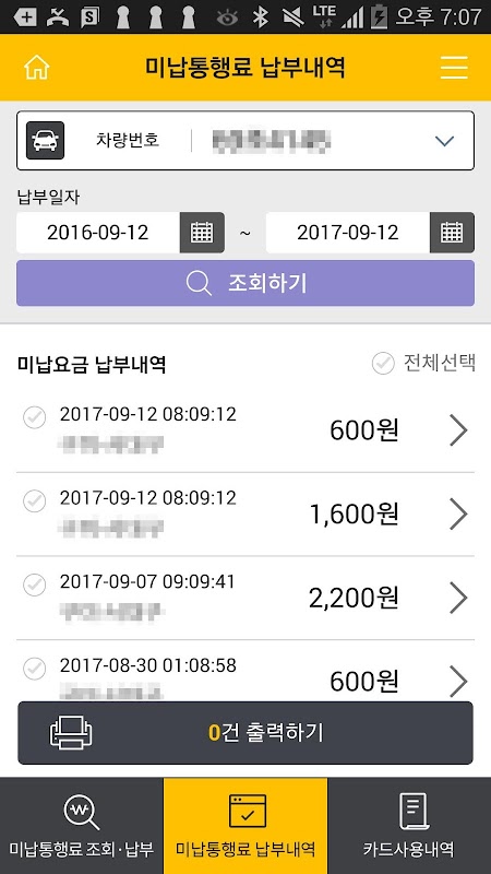 - 미납통행료 납부 내역 조회, 영수증 출력이 가능합니다.