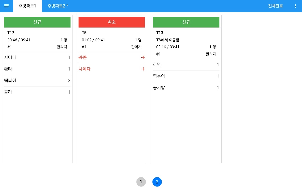 - 주문서 상단을 터치(클릭)하면 전체완료 합니다.