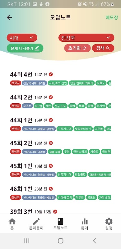 > 회차 범위와 난이도를 선택해서 문제를 풀 수 있습니다(시대/회차/키워드 풀이시)
