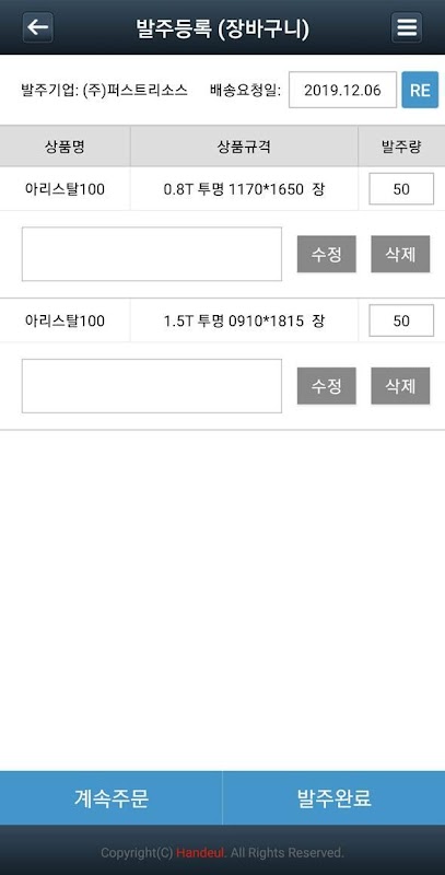 Bestandsstatus, Bestellsystem von Handeul Planet