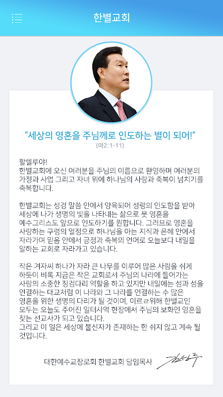 Neben verschiedenen Informationen über die Hanbyeol-Kirche können Sie sich auch für von der Kirche durchgeführte Bildungsprogramme bewerben.