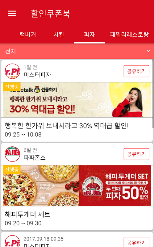할인쿠폰북 - 햄버거 커피 치킨 프랜차이즈 쿠폰 이벤트