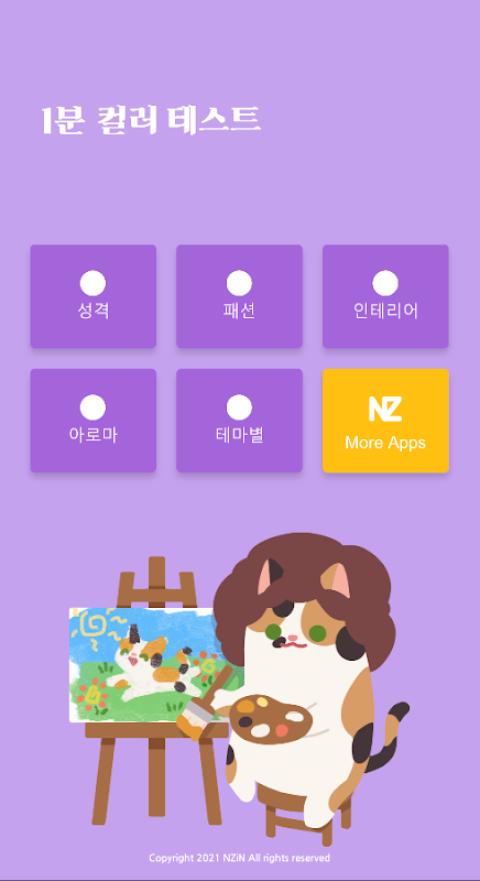 여러가지 테마별 테스트를 좋아하는 색 하나를 고르기만 하면 알 수 있습니다.