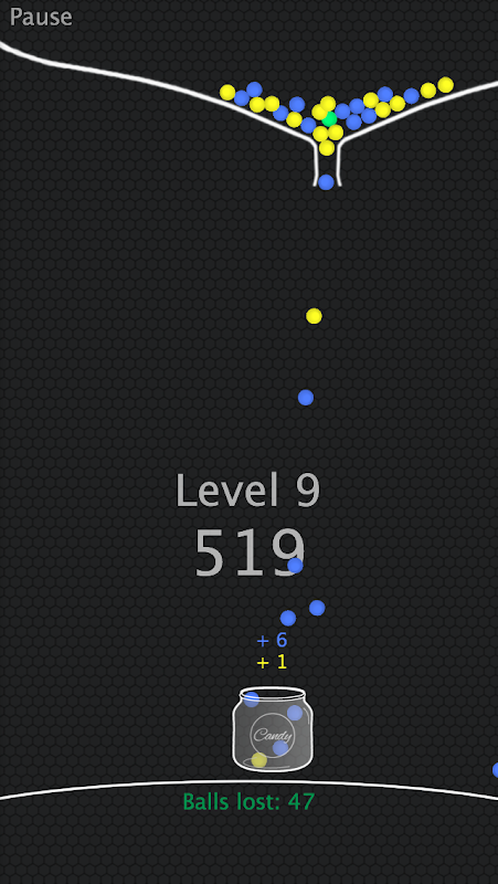 100 Balls+ is simple. You get 100 balls and 8 jars. Drop balls into jars. Colored balls earn more points. Lose jars or lose 100 balls and game over.