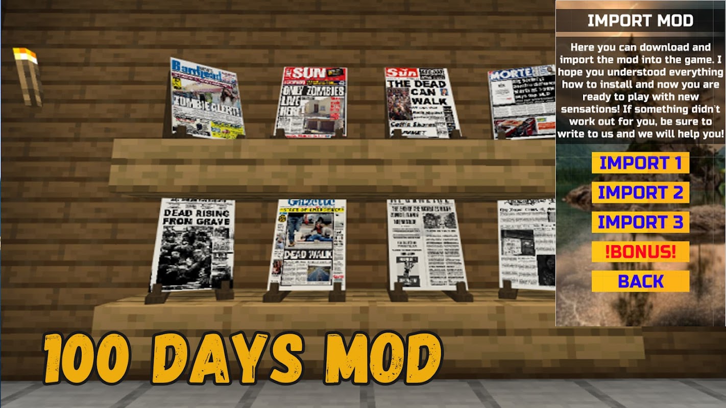 💪100 Tage in der Zombie-Apokalypse MOD für Minecraft PE ist eine modische Installation für McPe Game.💪