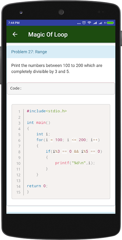 Bei dieser Anwendung haben wir 101 C-Programmierung Praxis Probleme für die Anfänger Studenten gesammelt. Durch das Üben alle Probleme ein Student kann starke Logik Basis der Problemlösung zu bauen. Lösungen für alle Probleme mit den Problemen gegeben, die sorgfältig geprüft werden. Fast alle Themen in Bezug auf C-Programmierung abgedeckt.
