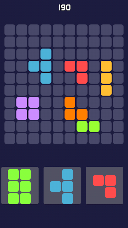 1010 Block Puzzle ist ein anspruchsvolles Puzzlespiel mit einfachem Gameplay. Es ist kinderleicht zu spielen: Ziehe einfach die Blöcke und arrangiere sie so, dass eine Zeile oder Spalte auf dem Spielfeld gefüllt wird. Sobald eine Zeile oder Spalte gefüllt ist, wird sie entfernt, und das Spiel endet, sobald keine Lücke mehr vorhanden ist. Es gibt kein Zeitlimit. Fülle alle Felder mit den passenden Blöcken und genieße 1010 Block Puzzle.