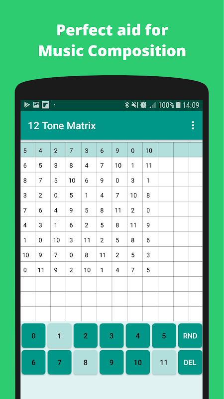 Wenn Sie möchten, können Sie eine zufällige Matrix generieren und die Matrix auch als Sharps / Flats- oder Pitch-Class-Ganzzahlen anzeigen.