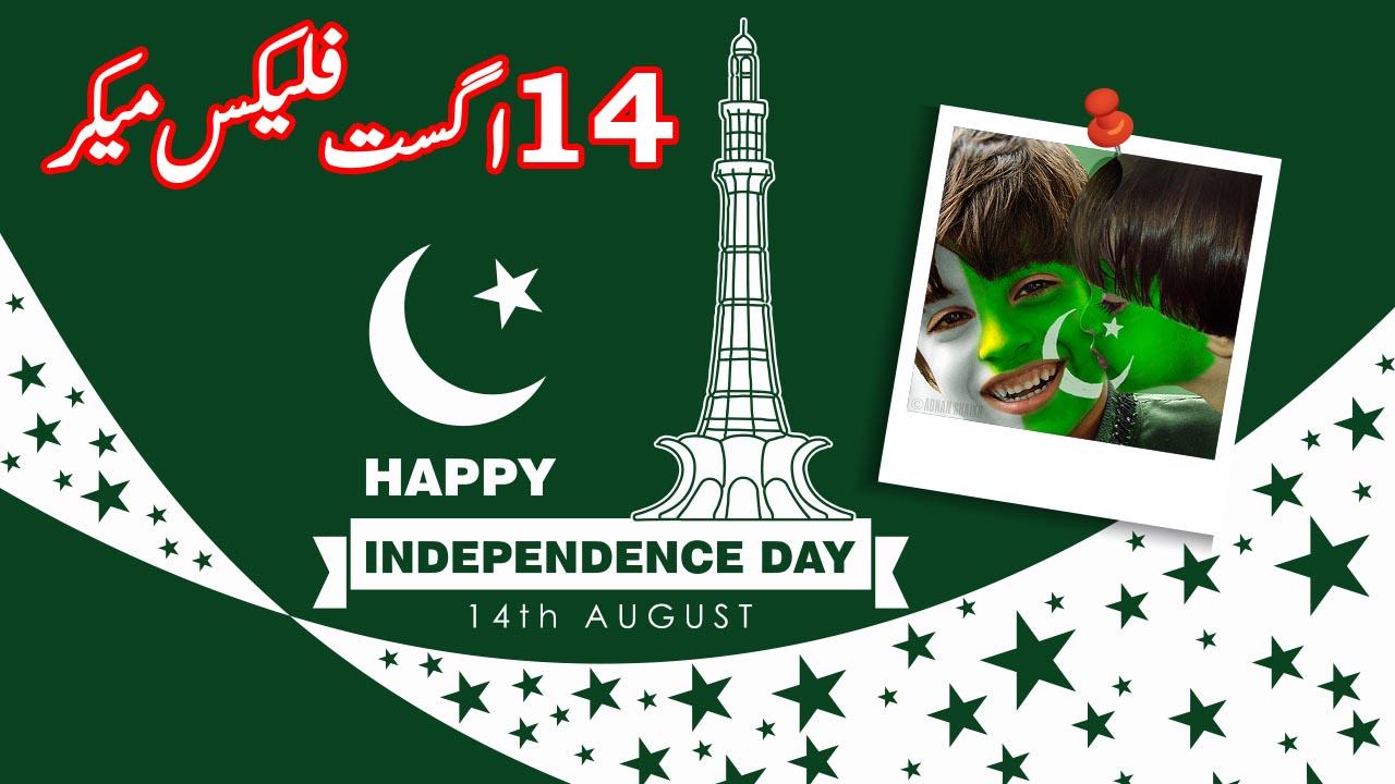 14 August Photo Frame 2018 : 14 August Flex Maker for Pakistan Independence Day14 august event with your photo and name on pics and pak Flex & flag stickers on your face to show your patriotism across the social media world to deliver your message in single flex photo.