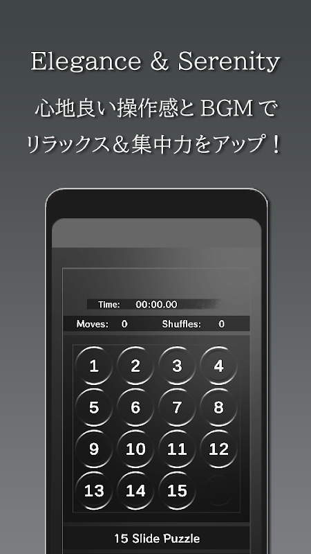 シックなデザイン、そして心地良いBGM&操作感でリラックスして脳トレが楽しめるエレガントな15パズルゲーム!