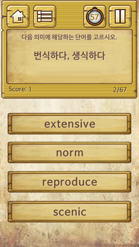 1. 영한학습, 한영학습, 문장(혹은 콜로케이션)학습 선택기능