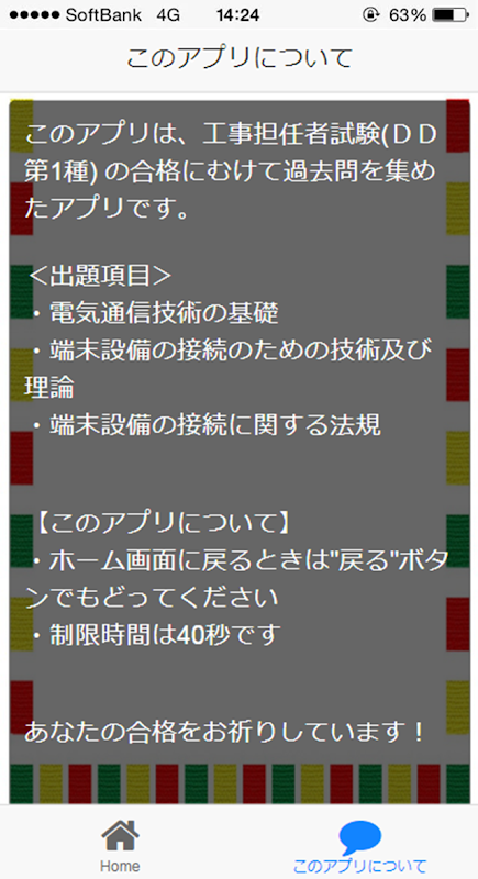 このアプリは、工事担任者試験(DD第1種) の合格にむけて過去問を集めたアプリです。