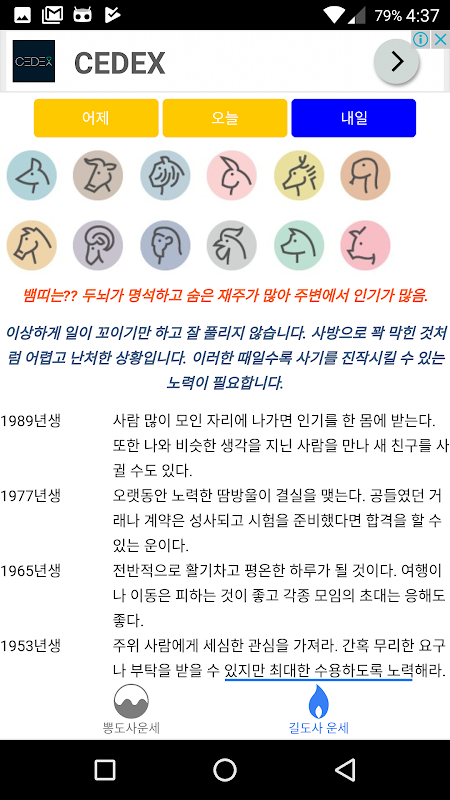 뽕도사님과 길도사님의 오늘, 내일, 주간, 월간 띠별 운세!!! 를 무료로 편하고 간편하고 빠르게 이용하세요~