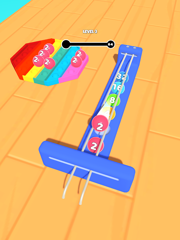 Balls will merge and get bigger in number to reach the goal.