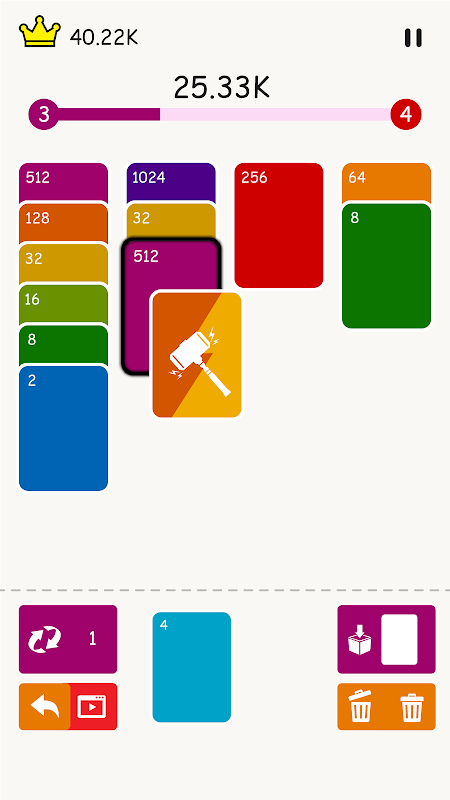 - Kombinieren Sie Karten mit demselben Wert, um eine Karte mit höherem Wert zu erstellen.