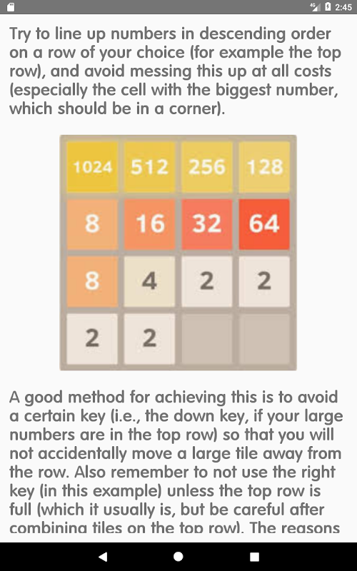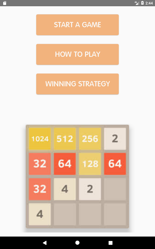 Swipe (Up, Down, Left, Right) to move the tiles. When two tiles with the same number touch, they merge into one. When 2048 tile is created, the player wins! 8 .. 16 ... 1024 .. 2048