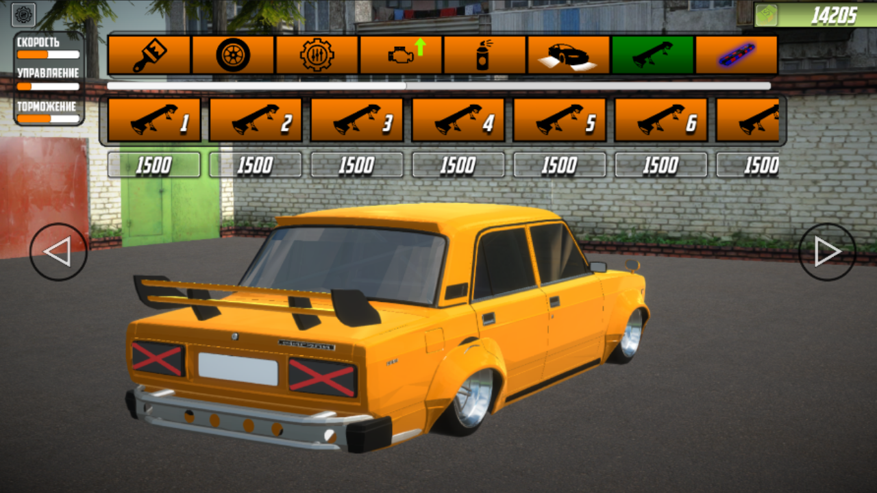 Im Spiel T für Android stehen dem Teilnehmer zunächst nur sieben 2107 Tinting, 2107 Rally, sieben 2107 Drift Edition Tuning zur Verfügung, an denen er die ersten Tests bestehen wird. Im Laufe der Zeit wird der Benutzer genug Geld ansammeln und in der Lage sein, ein weiteres Auto zu kaufen. Die Entwickler fügten dem Projekt russische Autos hinzu. Darunter gibt es verschiedene Modifikationen des VAZ 2107 und andere Optionen. Jedes Auto kann neu lackiert und im Design verbessert werden.