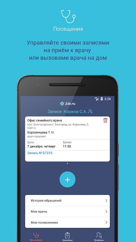 Die mobile Anwendung 2dr.ru ist das persönliche Konto eines Patienten.