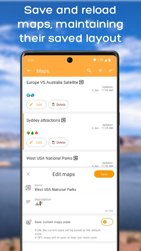• 🗺️ Karten- und Listenmodus: Visualisieren, verwalten, festlegen und bearbeiten Sie Karten und ihre Elemente direkt auf der Karte oder in einer optimierten Ansicht